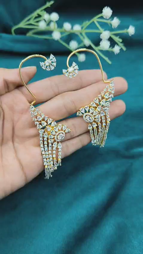 Cubic Zircon Gold-Silver Plated Tassel Drop Ear Cuff For Women