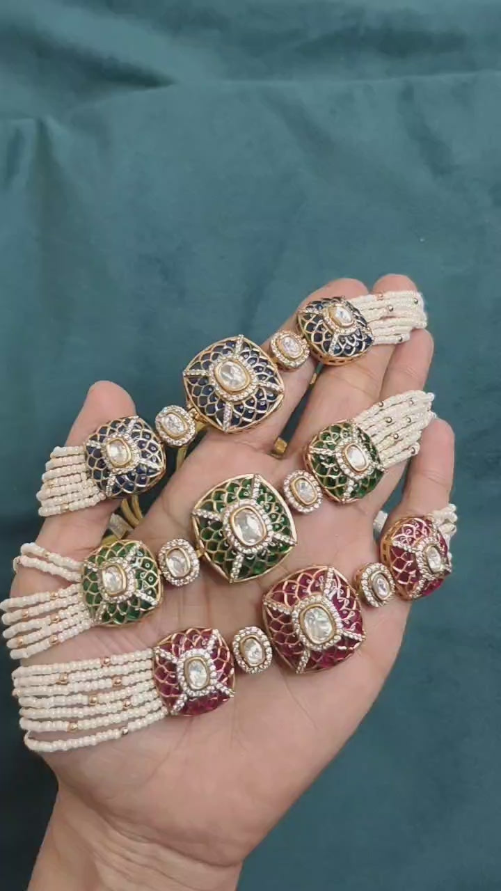 Emerald Green Carved Kundan Polki Gold Plated Choker Necklace Set