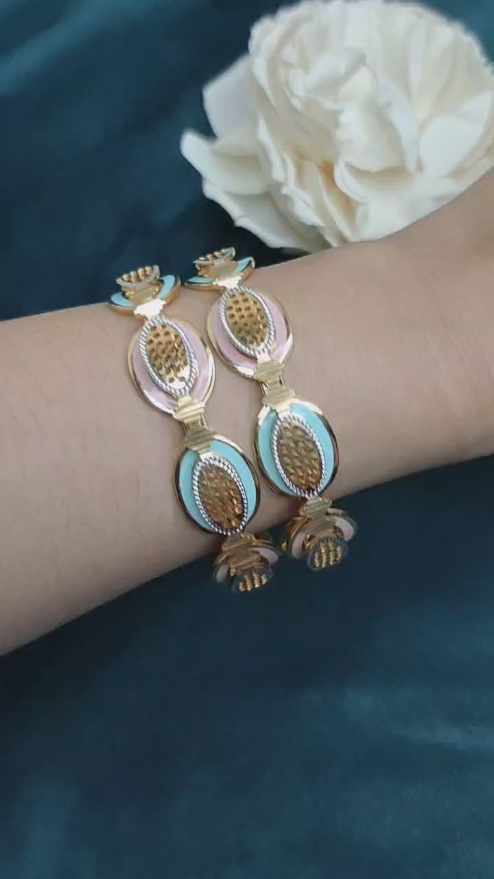 1 Gram Gold Meenakari Oval Shaped Gold-Plated Bangles (Pair)