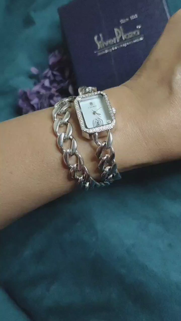 92.5 Sterling Silver Square Shape Chain Premium Women Watch
