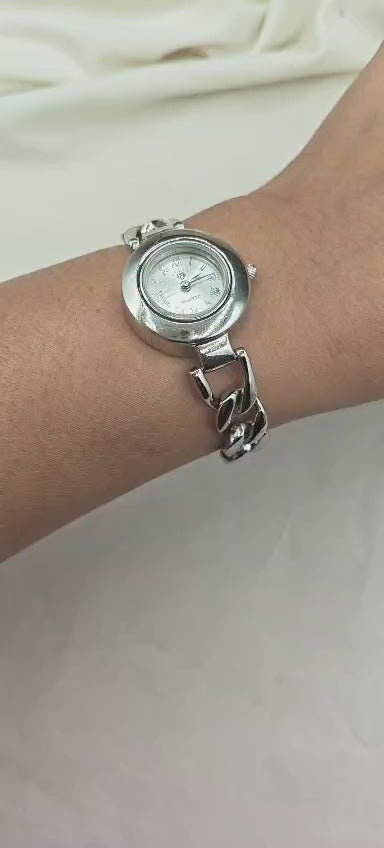 92.5 Sterling Silver Cuban Link Chain Style Women's Watch