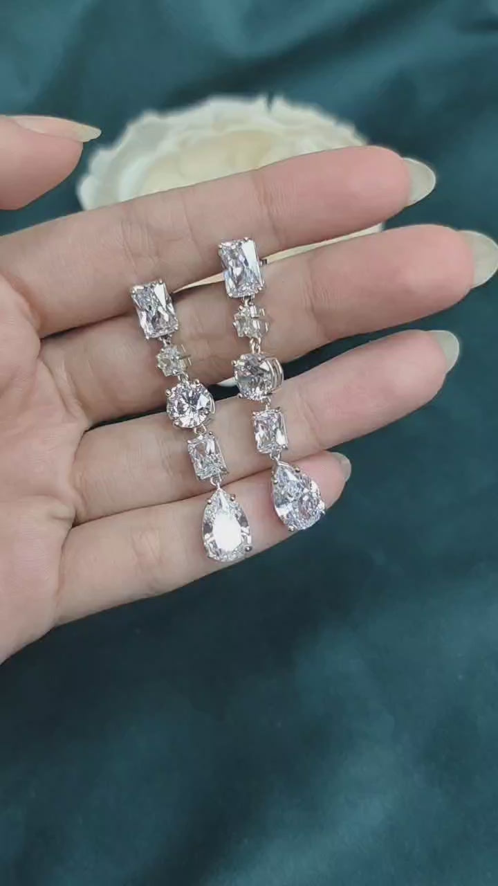 Add a touch of elegance to your look with our 92.5 sterling silver cubic zircon crystal dangle earrings. These stunning earrings feature shimmering cubic zircon crystals set in high-quality sterling silver, designed to catch the light with every move. Perfect for both casual and formal occasions, their lightweight design ensures all-day comfort. A timeless accessory to elevate your style effortlessly