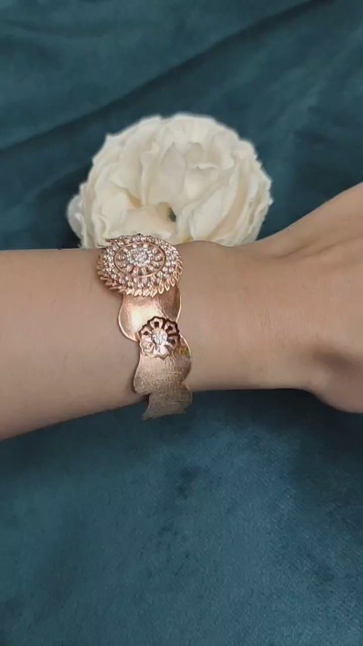 This 92.5 sterling silver diamond designer floral bracelet combines exquisite craftsmanship with luxurious detail. The floral motif is enhanced by brilliant diamonds, creating a striking yet elegant statement piece. The high-quality silver offers durability and a polished finish, making it a sophisticated choice for any event or everyday wear.