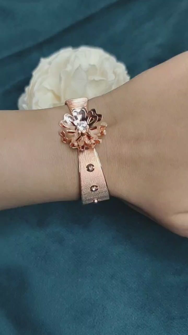 This 92.5 sterling silver floral kada bracelet is adorned with sparkling diamonds, combining timeless elegance with a touch of nature-inspired beauty. Perfect for any occasion, its intricate floral design and durable silver finish make it a must-have accessory.