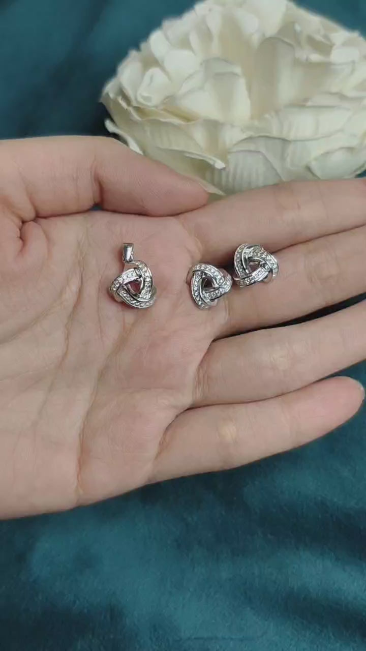 Elegant and radiant, this 92.5 sterling silver diamond spiral floral shape pendant Set showcases a mesmerizing floral-inspired spiral design. Adorned with sparkling diamonds, it exudes sophistication and charm, making it a perfect accessory for any occasion. Lightweight and versatile, this set adds a touch of timeless beauty to your jewelry collection.