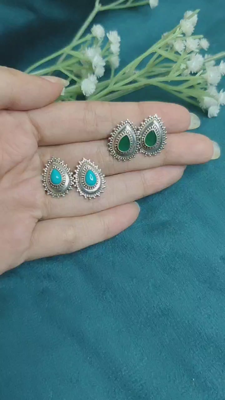 92.5 Sterling Silver Emerald Stone Stud Earring
