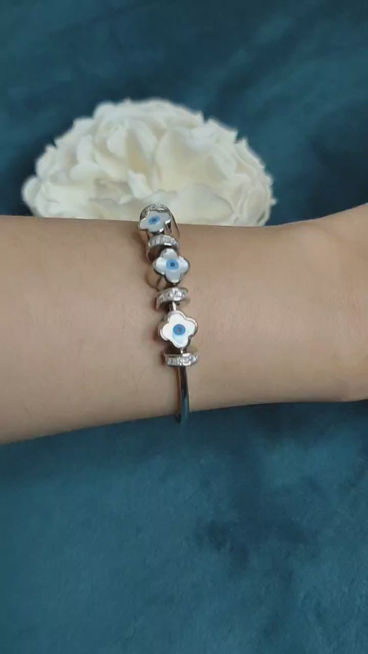 92.5 Sterling Silver Evil Eye Zircon Women Charms Kada Bracelet