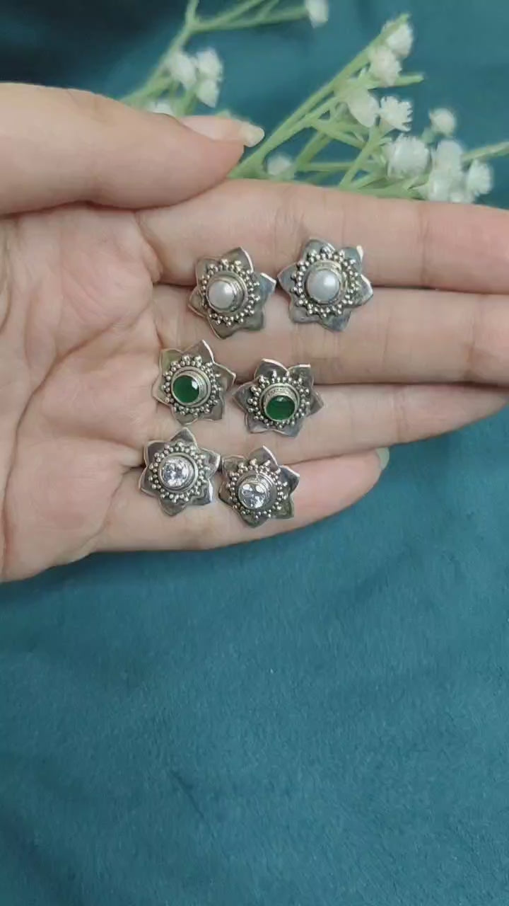 92.5 Sterling Silver Flower Stud Earring