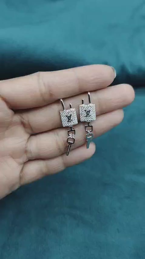 92.5 Sterling Silver Louis Vuitton Inspired Lock And Key Design Earrings For Women