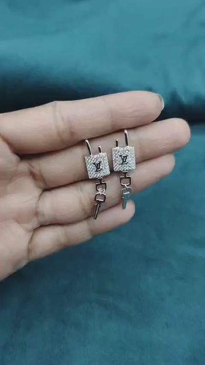 Trendy and elegant, these 92.5 Sterling Silver Louis Vuitton inspired lock and key earrings symbolize style and sophistication. A perfect statement piece for women who love unique designer-inspired jewellery.