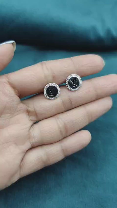 Stylish and luxurious, these 92.5 Sterling Silver Louis Vuitton-inspired small stud earrings feature sparkling cubic zircon stones that add a touch of glamour. Perfect for women who love designer-inspired elegance.