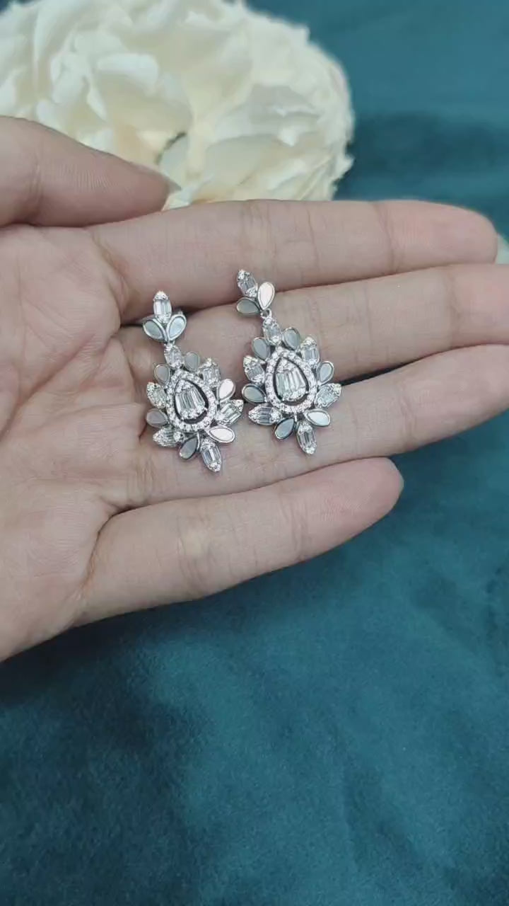 92.5 Sterling Silver Mother of Pearl Cubic Zircon Earring