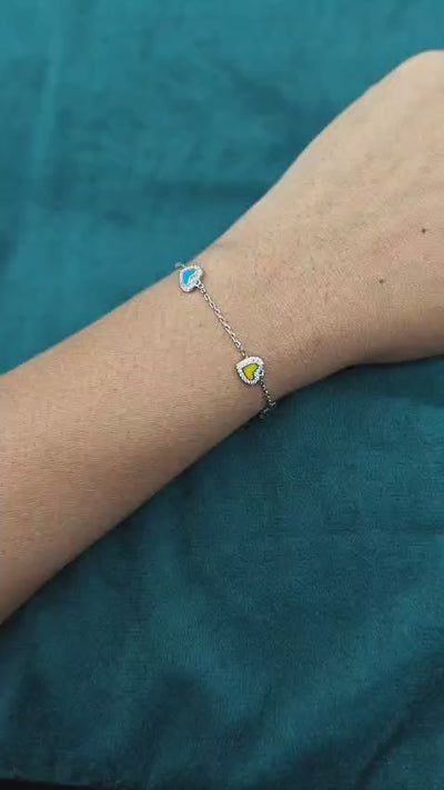 This beautiful 92.5 sterling silver bracelet comes with a chain that has four heart-shaped charms with meenakari enamel work. These hearts are encircled by a halo of cubic zircon accents. This beautiful piece of jewelry comes with a loose adjustable link chain and a spring ring clasp. This piece of jewelry is ideal for everyday wear or as a gift. It is of high quality and is a great gift for anyone.