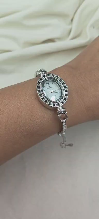 92.5 Sterling Silver Oval Shape Baguette And Cubic Zircon Adjustable Watch