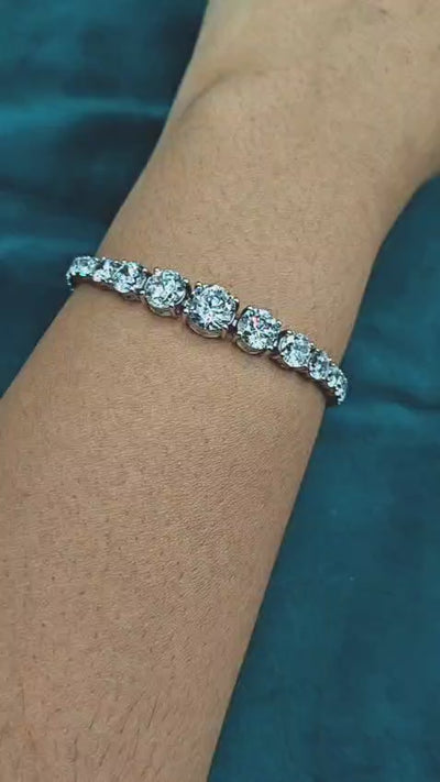 Exude effortless luxury with this 92.5 sterling silver pure silver bracelet that has been crafted with a graduated array of brilliant round-cut cubic zircon crystals. These high-quality crystals have been set securely in a classic prong setting that gives off a high-impact sparkle, similar to that of diamonds. To ensure a comfortable fit, this piece features a convenient adjustable slider clasp that makes it easy to move seamlessly from day to night.