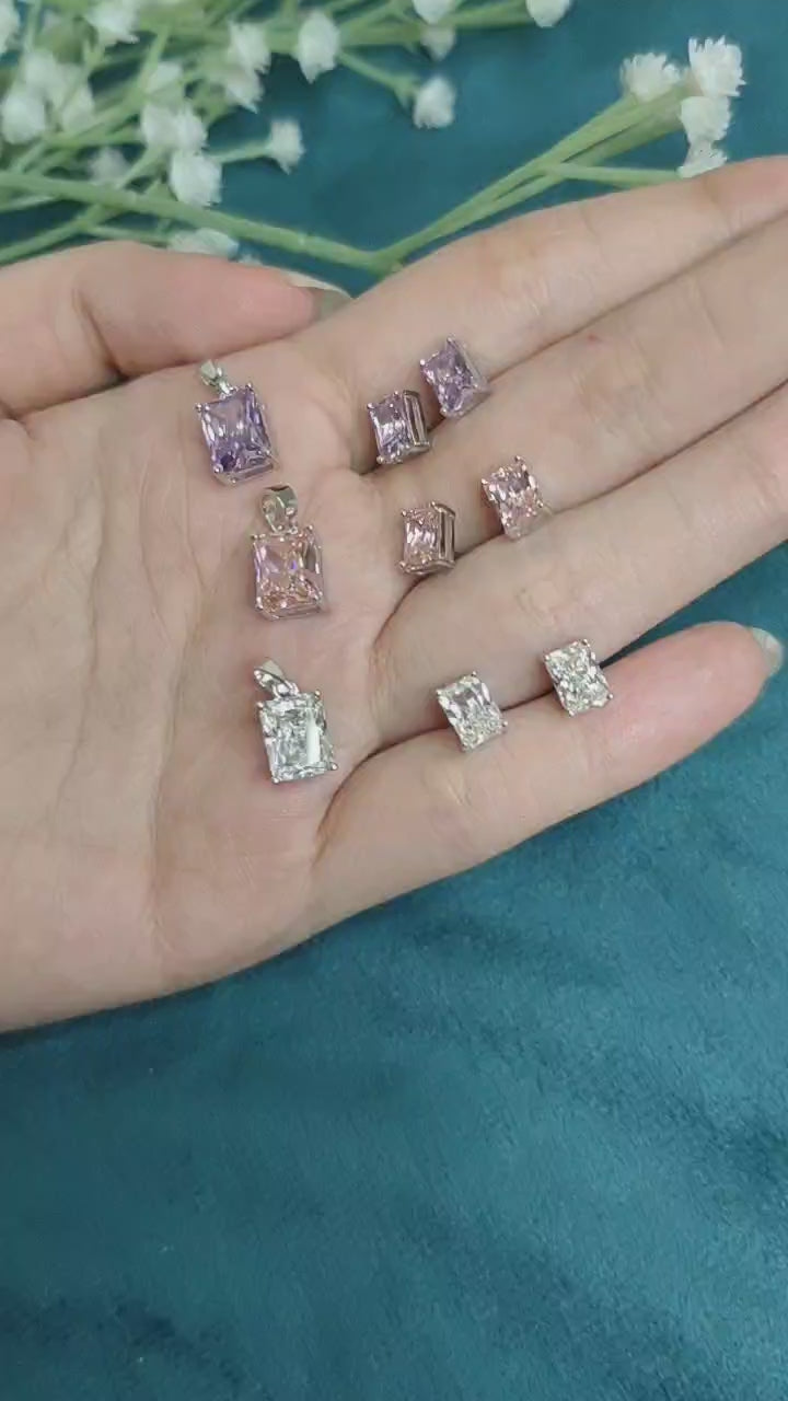 92.5 Sterling Silver White Stone Square Design Pendant Set