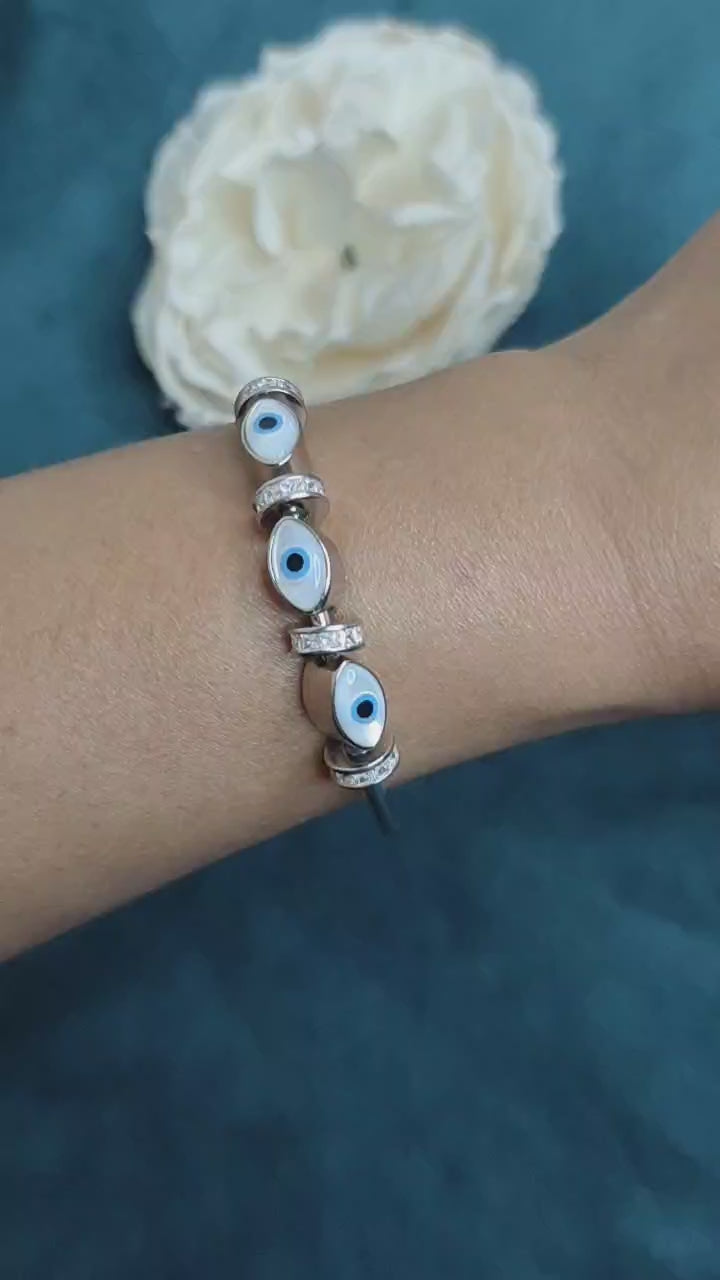 92.5 Sterling Silver Zircon Evil Eye Women Charms Kada Bracelet