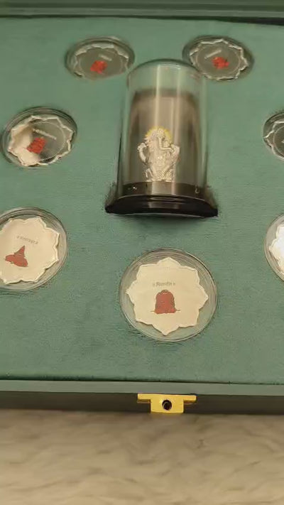 999 Fine Silver Ganesh Idol Gift Set With Meenakari Coin