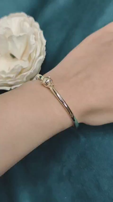 Add a touch of bold elegance to any outfit with this Cubic Zircon Gold Plated Kada Bracelet. Featuring a striking animal-head design and brilliant cubic zirconia accents, this high-polish bracelet is the perfect blend of modern style and timeless charm.