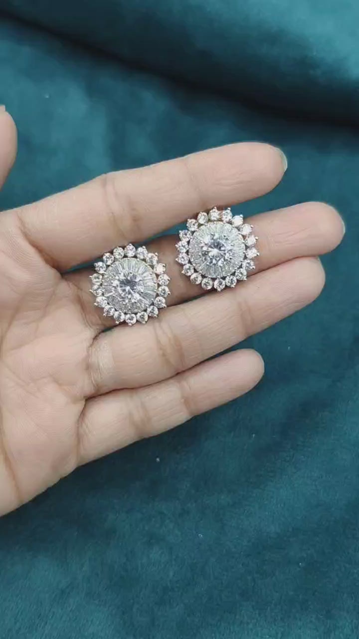 Sleek and sophisticated these baguette diamond solitaire stud earrings feature a dazzling diamond centerpiece in a refined silver-gold plated finish. Perfect for adding timeless elegance to both everyday wear and special occasions