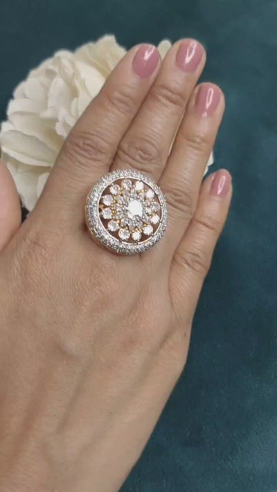 Big Round Shape Cubic Zircon Adjustable Flower Finger Ring For Women
