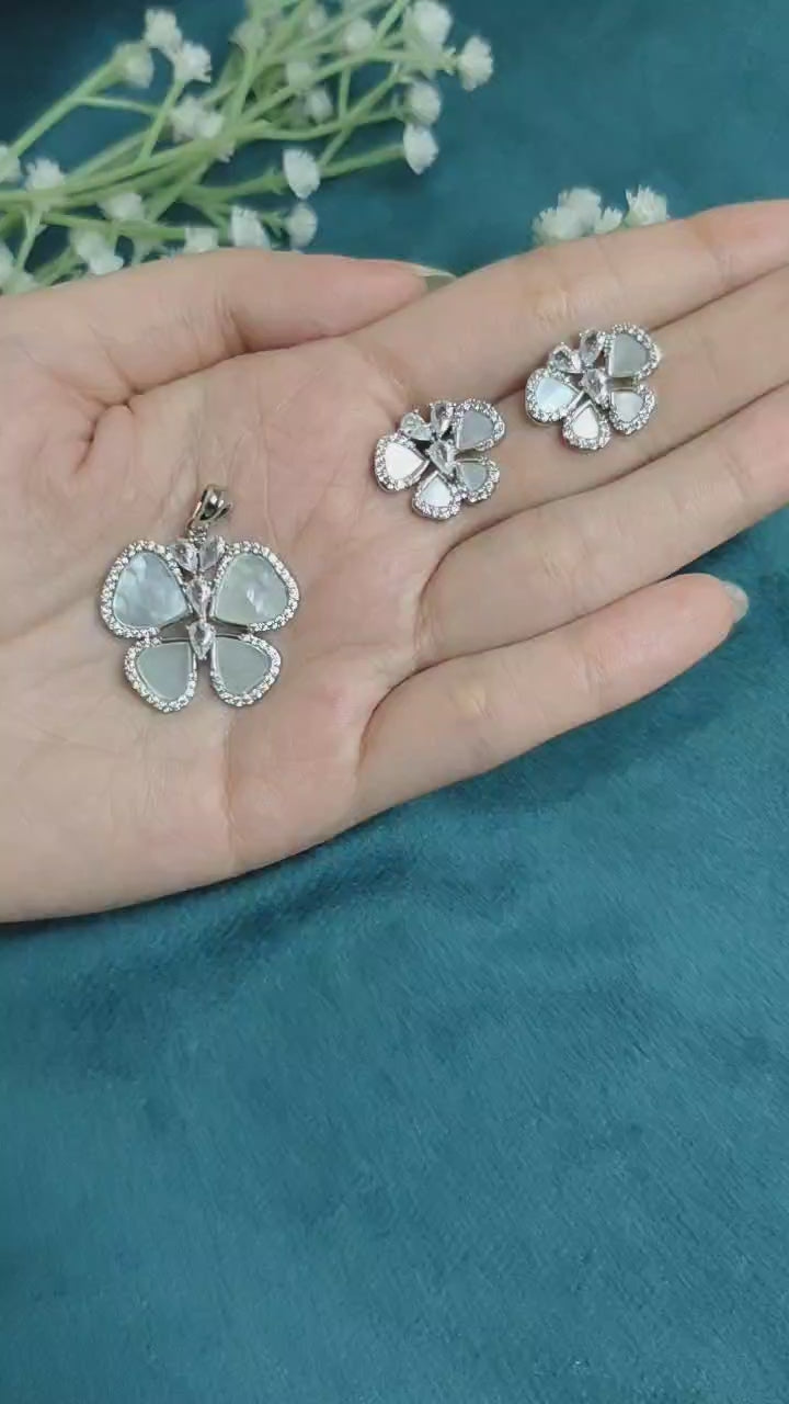 Butterfly Mother of Pearl Cubic Zircon Pendant Set