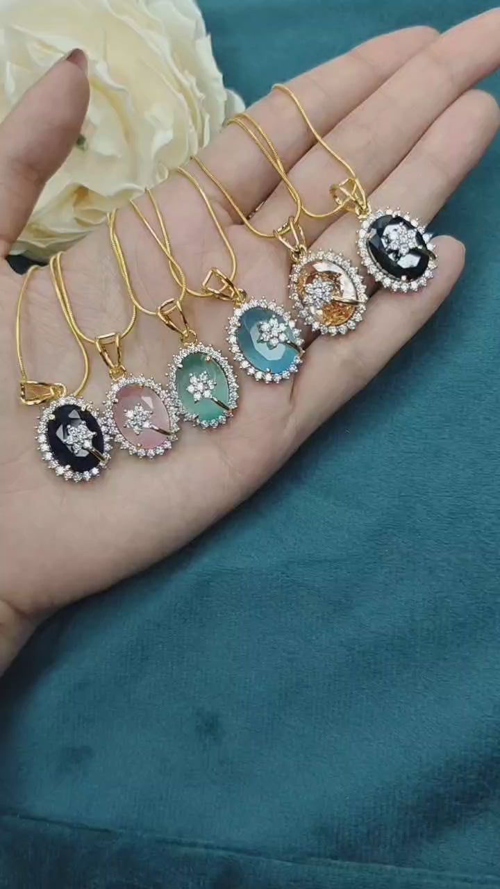 Colorful Cubic Zircon Oval Shape Pendant Set With Chain