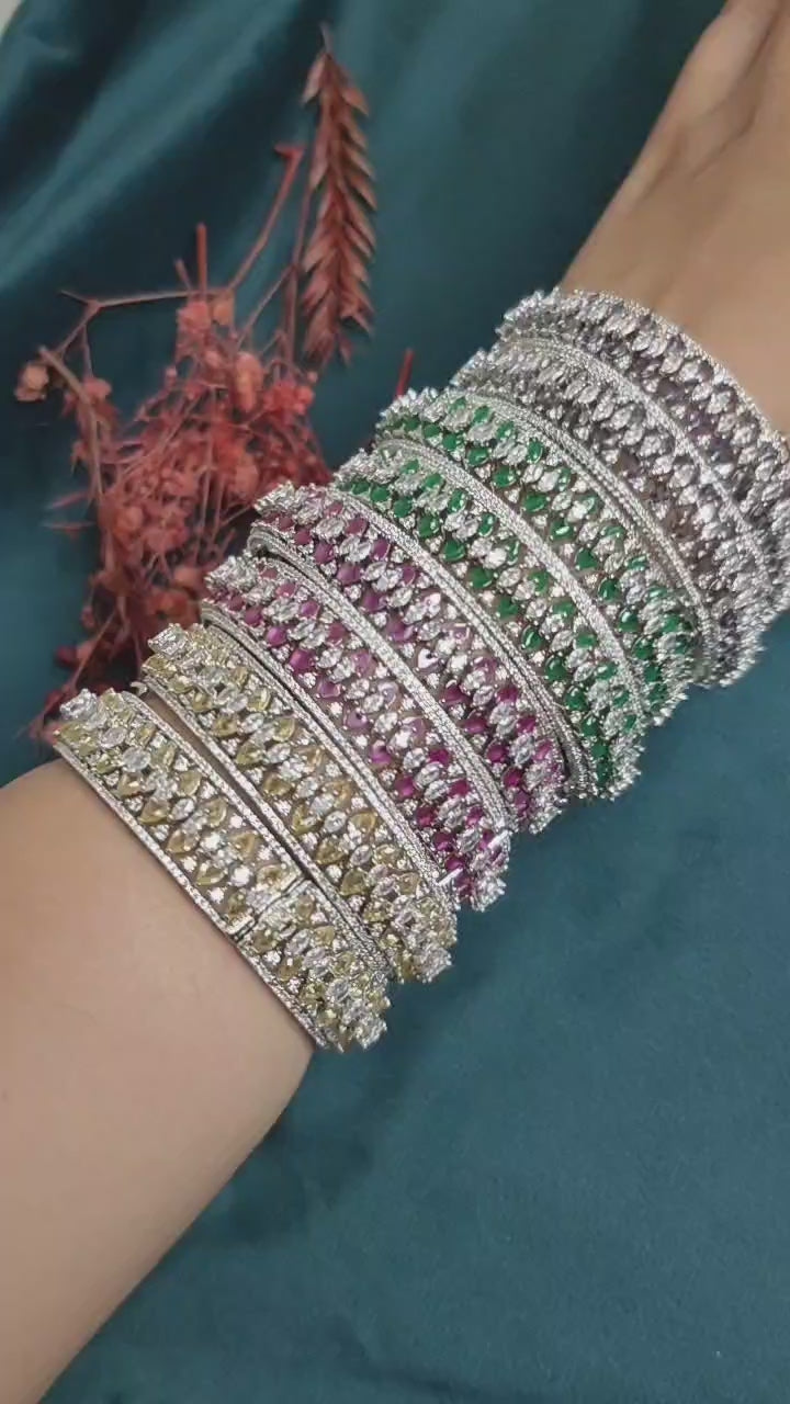 Colourful Marquise Diamond Silver Plated Openable Bangles (Pair)