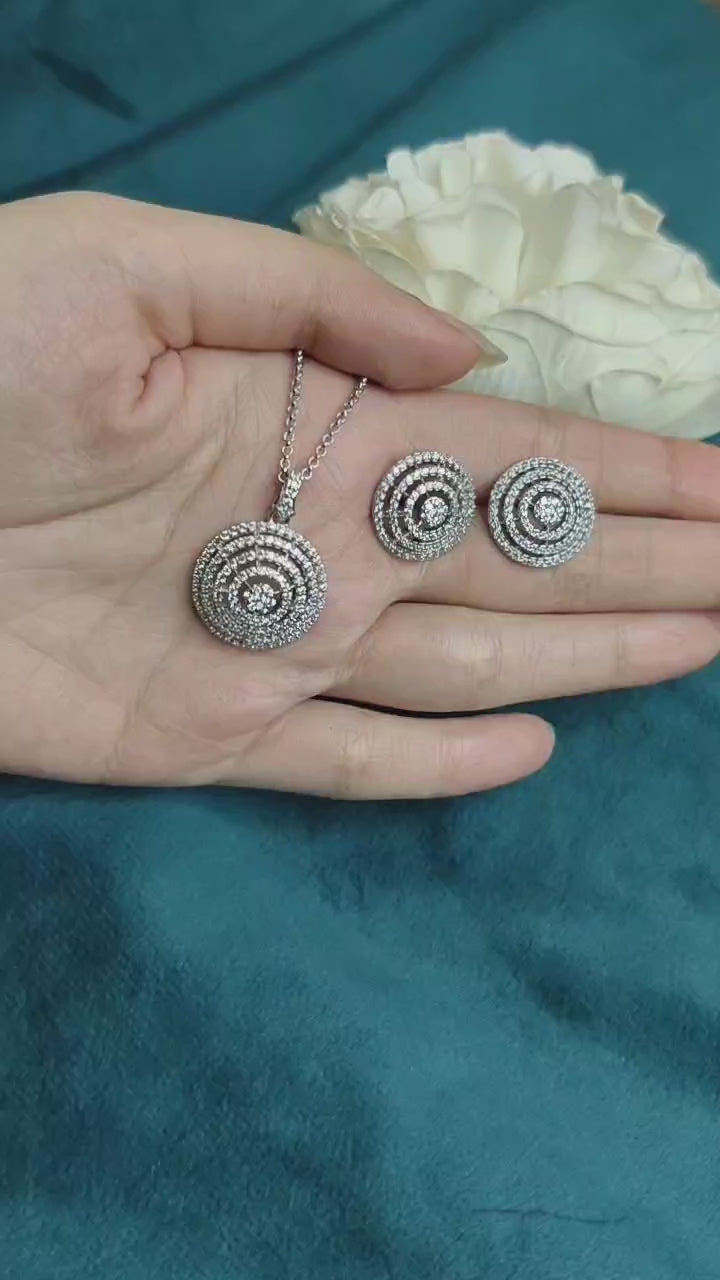 Cubic Zircon Designer Pendant Set+Chain Matching Earring Set