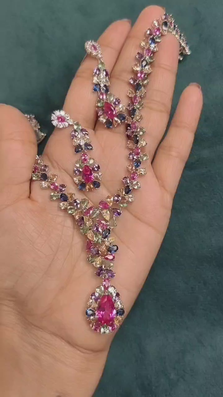 Cubic Zircon Multi Color Long Necklace set