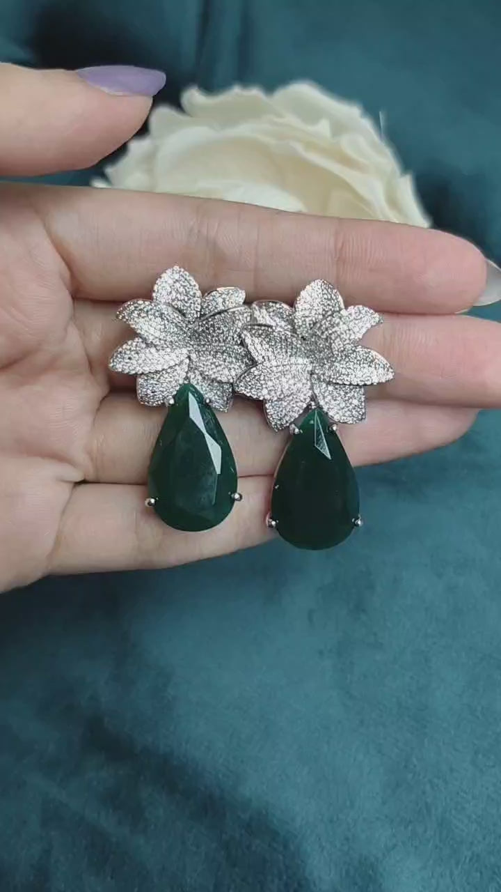 Add a touch of elegance with these cubic zircon floral design emerald women's earrings in silver polish. Featuring a delicate floral motif adorned with shimmering cubic zircon stones and a captivating emerald centerpiece, these earrings exude grace and sophistication. The silver-polished finish enhances their timeless appeal, making them perfect for both everyday wear and special occasions.