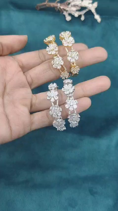 These beautiful bali hoop earrings come with a cascade of flowers created using sparkling cubic zircon stones designed to reflect every moment. The earrings come in radiant gold and silver plating and are designed in such a way as to provide a classy look as you move around. The intricate details and high shine finish make it one of those earrings you do not need to worry about falling off whenever you move.
