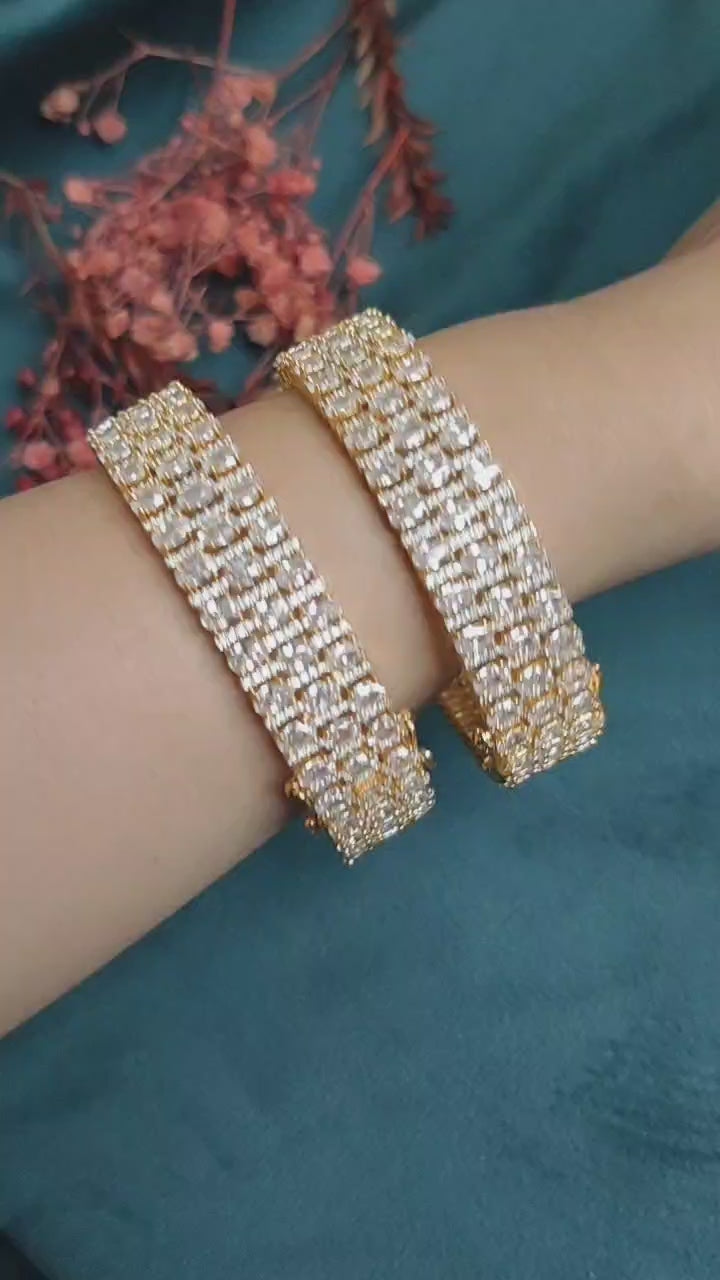 Cubic Zircon Gold-Silver Plated Broad Bangle (Pair)
