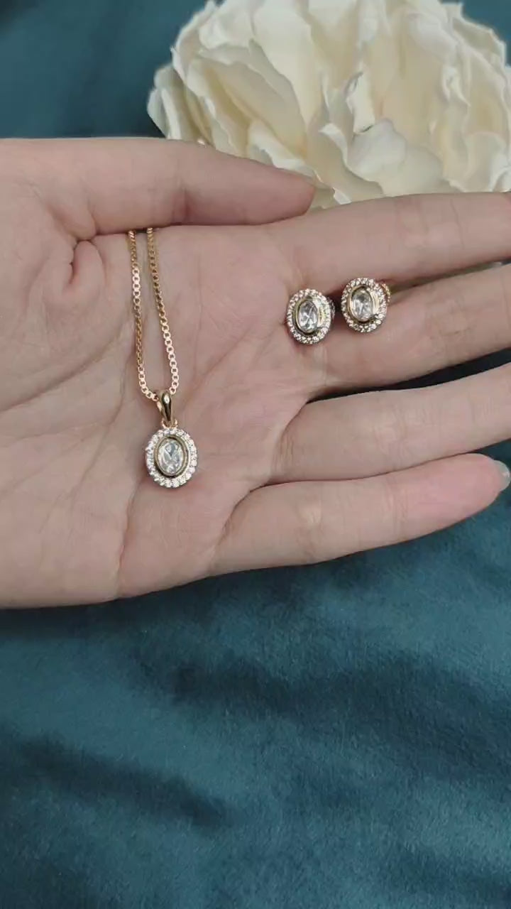 Cubic Zircon Kundan Gold Plated Small Pendant Set