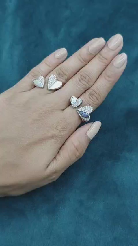 Cubic Zircon Mother of Pearl Two Hearts Design Adjustable Finger Ring For Women