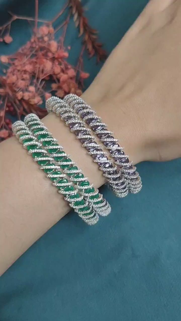 Cubic Zircon Silver Plated Colorful Bangles (Pair)