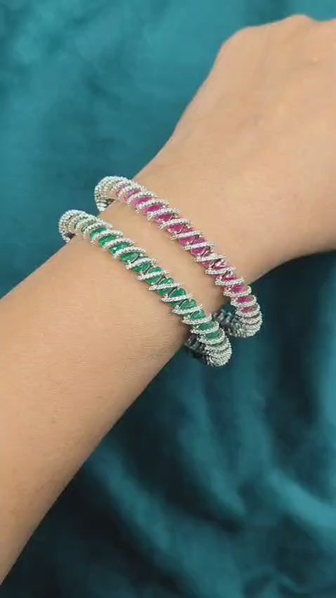Cubic Zircon Silver Plated Colorful Bangles (Pair) 2