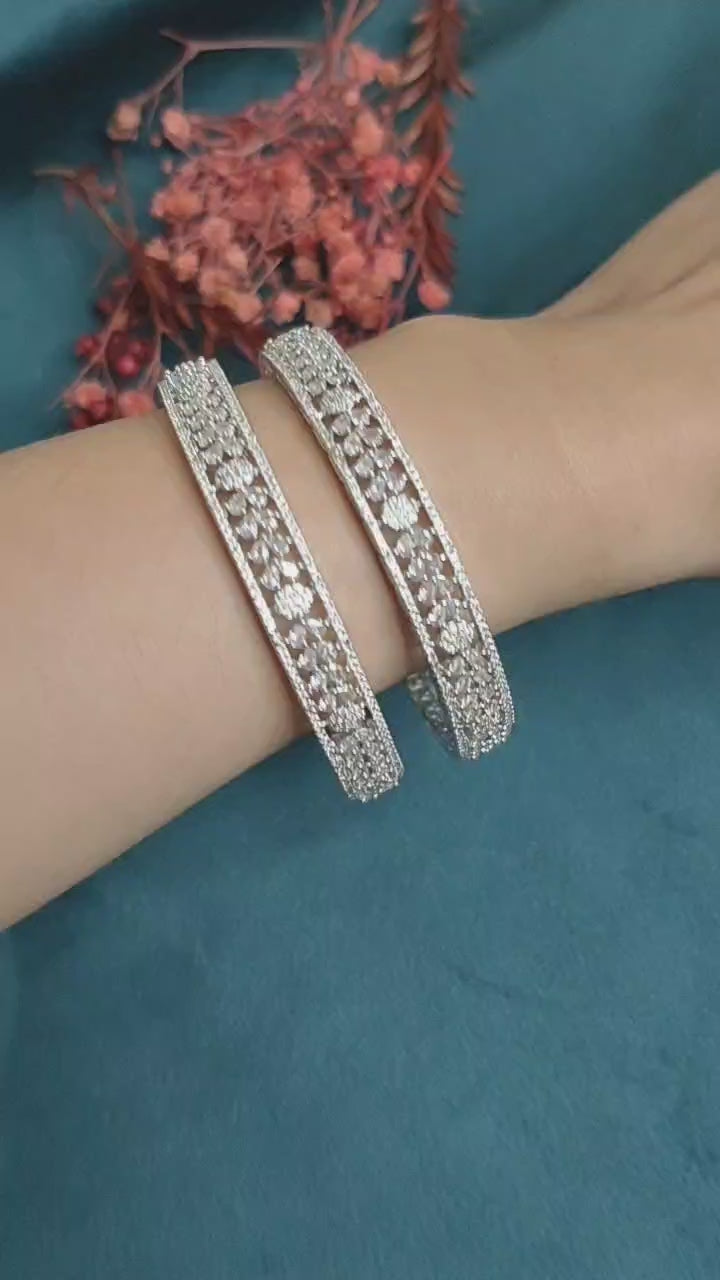 Cubic Zircon Silver Plated Designer Bangle (Pair)