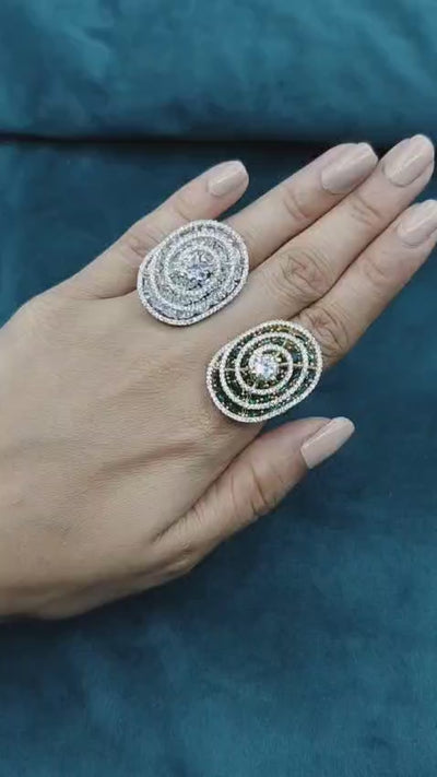 Cubic Zircon Twisted Layered Shape Big Adjustable Finger Ring For Women