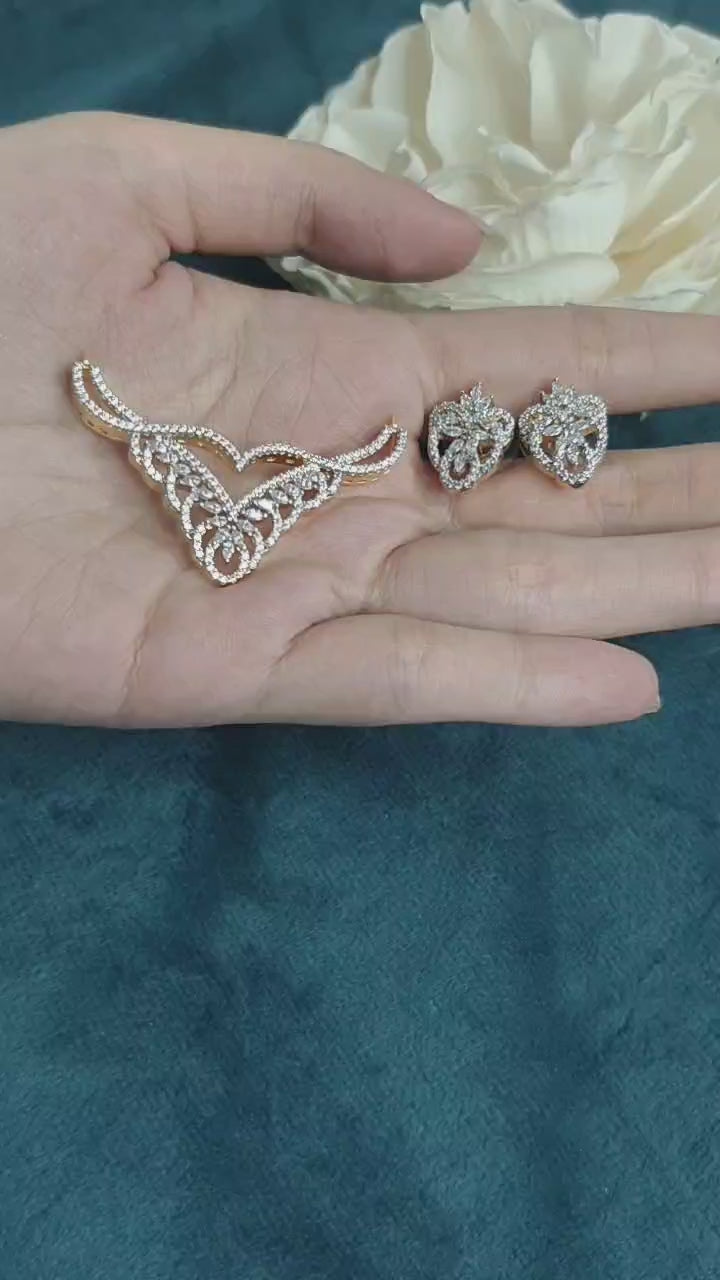 The centerpiece is the Cubic Zircon studded pendant, which exudes a classic and elegant look. The design can vary from floral, abstract, or traditional motifs to simple geometric shapes. The Cubic Zirconia stones give the pendant a diamond-like brilliance. It is often gold-plated or has a metallic finish to complement the sparkling stones.
