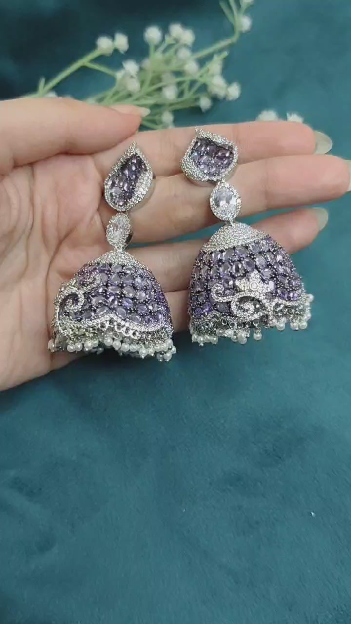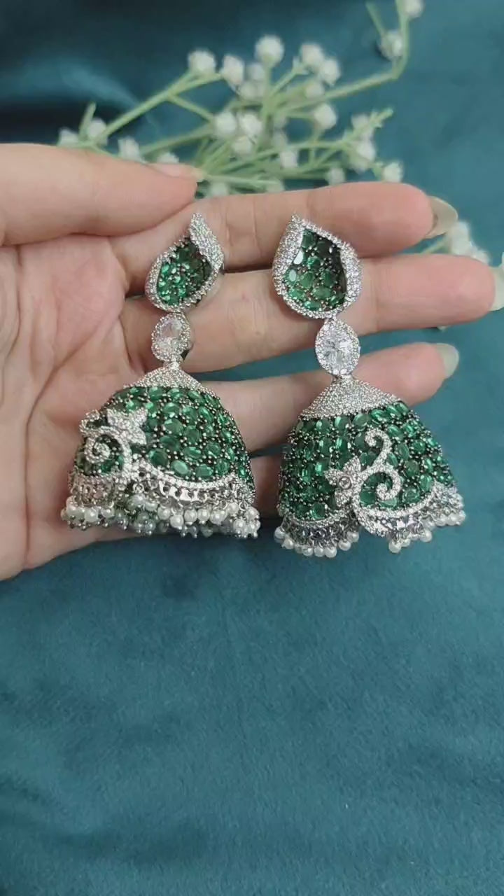Cubic Zircon Silver-Plated Stylish Trendy Unique Designer Women earring Jhumka