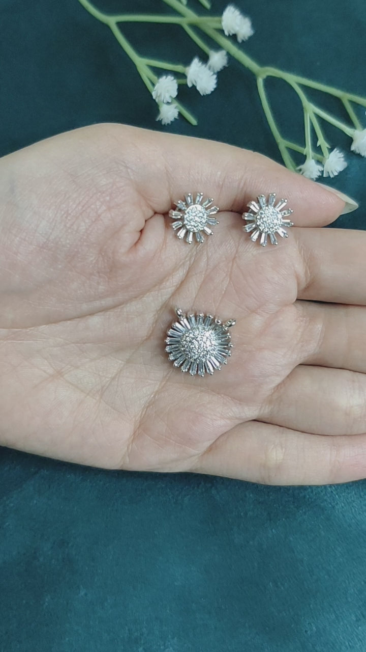 Dazzling Crystal Floral Cubic Zircon Round Pendant set