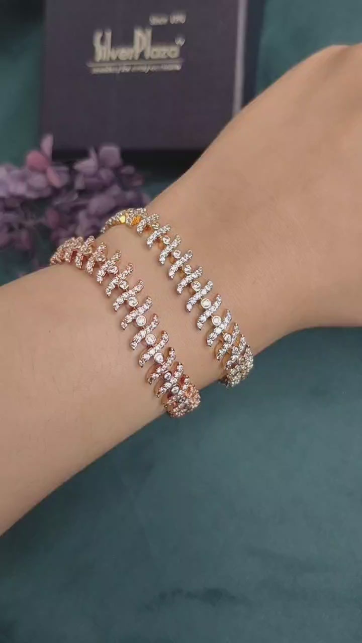 The Designer Cubic Zircon Loose Bracelet is a sleek and sophisticated accessory, featuring sparkling cubic zircon stones that exude elegance. Its modern design and flexible structure make it a versatile piece, perfect for elevating any look with a touch of luxury.