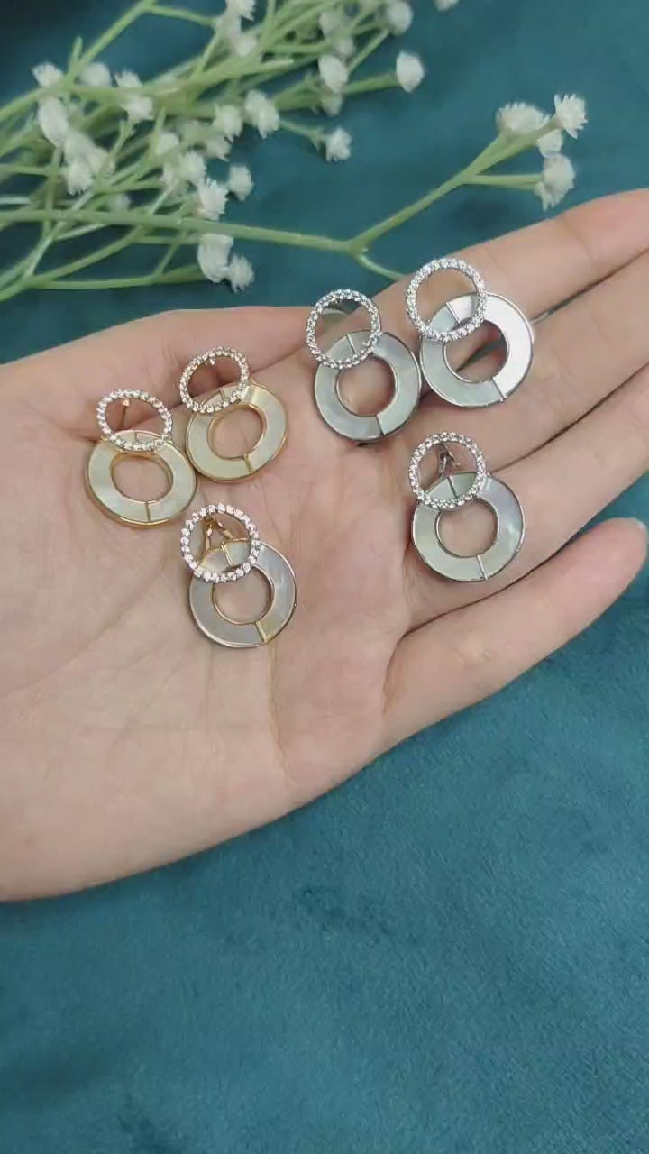 The Double Round Mother of Pearl Zircon Pendant Set is an elegant jewelry piece featuring a sophisticated design with two concentric round elements. The pendant's centerpiece showcases Mother of Pearl, known for its iridescent glow and subtle color variations, adding a soft and refined touch. The outer circle is typically encrusted with sparkling zircon stones, mimicking the brilliance of diamonds and enhancing the overall radiance of the piece.