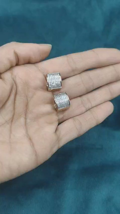 Dual Tone Cubic Zircon Pave Set Rectangular Small Bali Earrings For Women
