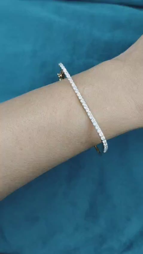 This beautiful openable kada bracelet boasts a modern geometric design with a flawless finish made from the finest gold and silver plating. The cutting edge is adorned with a continuous string of brilliant-cut cubic zircon stones that seem to radiate light from every direction. This comfortable and stylish piece boasts a secure clasp system that ensures a perfect fit, making it a stunning addition to any jewelry collection.