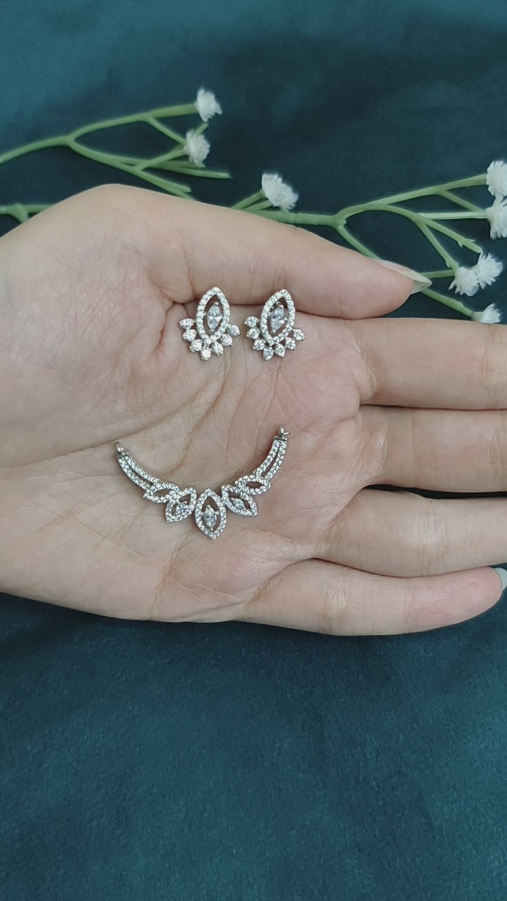 Celebrate timeless elegance with this cubic zircon mangalsutra pendant set, designed to blend tradition with a modern touch. Crafted with sparkling cubic zircon stones, the pendant radiates grace, making it perfect for daily wear or special occasions. Paired with matching earrings, this set adds a refined charm to your look while honoring the sacred bond of marriage.