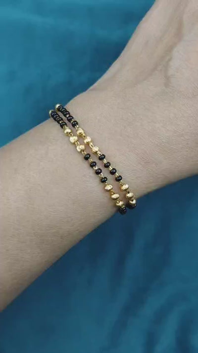 Elegant Double Strand Black Beads Gold Plated Mangalsutra Loose Bracelet