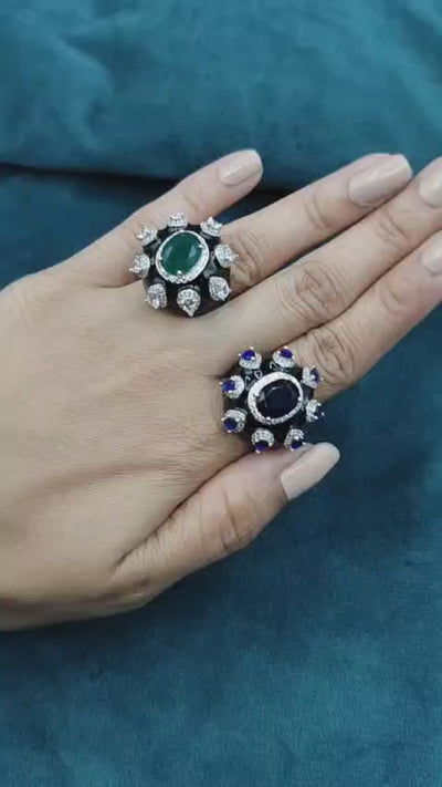 Elegant Minakari Cubic Zircon Adjustable Finger Ring for Women