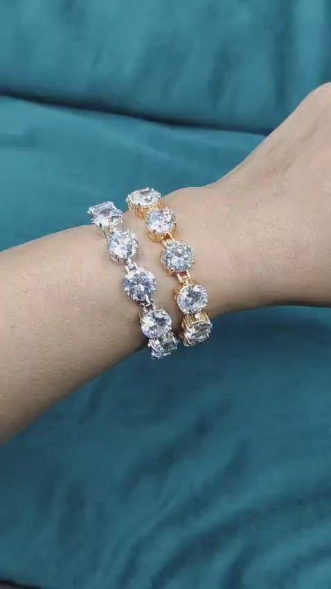 Elegant Round Cut Diamond Style Dual Tone Tennis Loose Bracelet